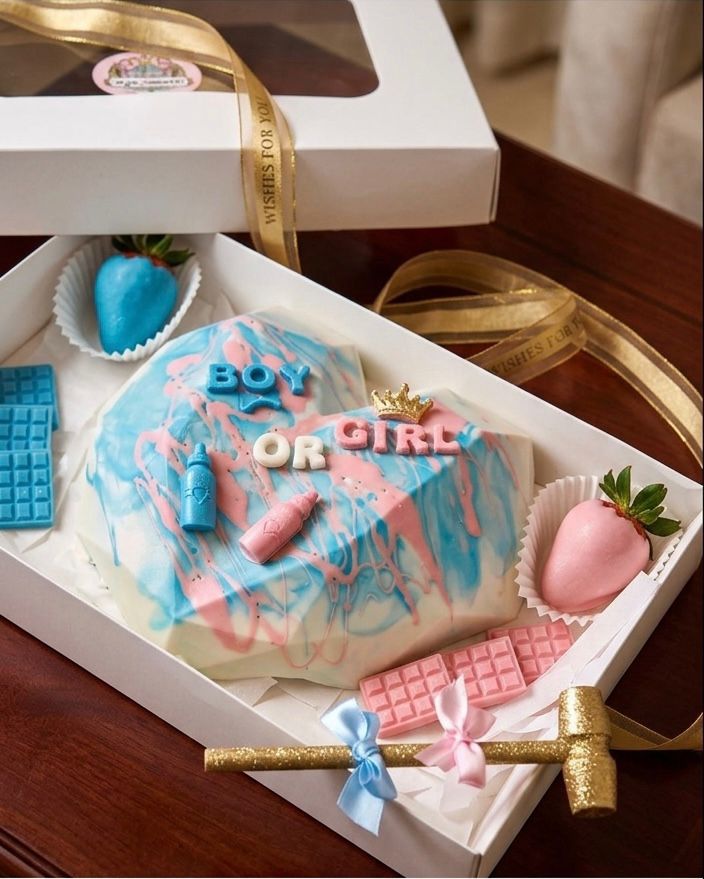 أفكار حلوة ومبتكرة للحلويات تضيف لحظة مفاجأة مميزة في حفلات كشف جنس الجنين، مع تفاصيل تناسب أجواء المناسبة.